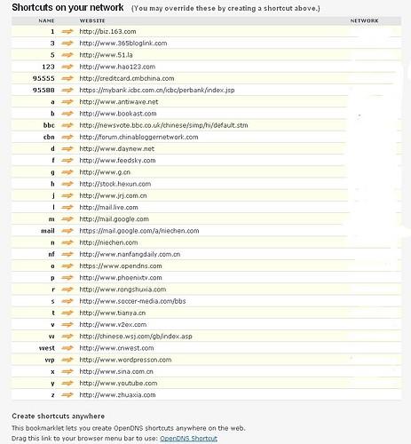 还有一些其他功能 OpenDNS Shortcut 类似于域名缩写。