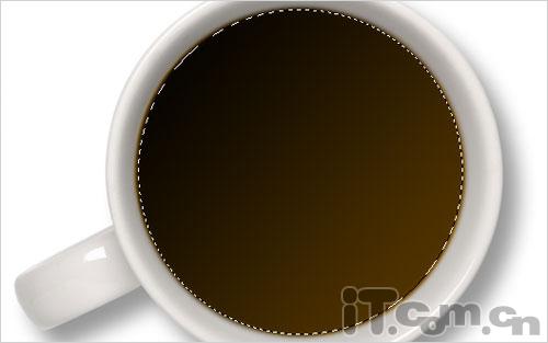 1、首先我们要从网上下载一幅咖啡素材图片,然后在photoshop中打开它。然后我会为咖啡添加一些明暗的渐变效果,创建一个新图层,使用使用椭圆选框从此创建下图所示的选区。