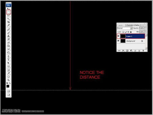 2、使用矩形选框工具(M)创建一个选区,宽度与图层一样,高度约为80%。