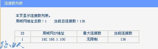 我们知道,路由器的连接数是有上限的,若其中一部分电脑用完了连接数,那么其余的电脑就没法上网了;在网吧这种复杂的网络环境下,建议启用连接数限制,最大连接数建议设置为100或者150即可。