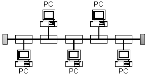 总线结构是使用同一媒体或电缆连接所有端用户的一种方式,也就是说,连接端用户的物理媒体由所有设备共享,如下图所示。使用这种结构必须解决的一个问题是确保端用户使用媒体发送数据时不能出现冲突。在点到点链路配置时,这是相当简单的。如果这条链路是半双工操作,只需使用很简单的机制便可保证两个端用户轮流工作。在一点到多点方式中,对线路的访问依靠控制端的探询来确定。然而,在LAN环境下,由于所有数据站都是平等的,不能采取上述机制。对此,研究了一种在总线共享型网络使用的媒体访问方法:带有碰撞检测的载波侦听多路访问,英文缩写成CSMA/CD。