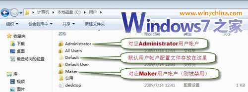 ② 打开系统盘的用户文件夹C:Users,可以看到每个用户帐户对应的文件夹。