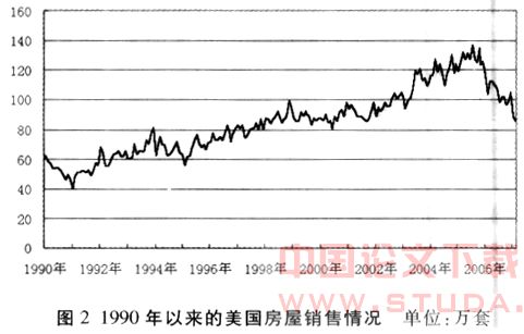 首先,数据显示,到2006年底,美国的人口已达到3亿人,平均每个家庭2.6人,平均约2/3的家庭拥有自己的住房。这对于生活保持较高流动性的美国人而言,如此之多的人已拥有住房,对新建住宅的需求必然下降。同时,由于美国部分传统产业衰退在持续,失业率扩大,二手房交易日益不活跃,使持续上涨的房价体系更因缺乏基础而呈现出脆弱性。