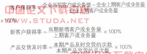 客户满意度可用老客户保持率、新客户获得率及产品交货及时率三项指标来衡量,其计算公式分别为: