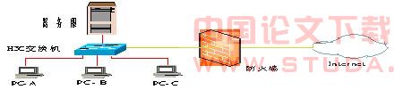 图1是典型的小企业的网络结构,外连通过防火墙连接Inernet,内部通过交换机连接服务器、PC机,图中采用H3C交换机,由于病毒等原因公司决定在PC之间采用端口隔离技术,而访问服务器和Inernet要照常。在H3C交换机上连接PC的端口采用端口隔离,配置如下:
