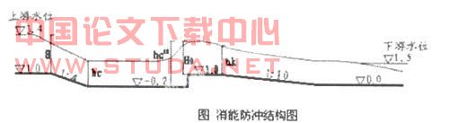下游水深对出流没有影响,故池内淹没情况仍可按宽顶堰自由出流公式计算。对于水平调整后的水深可按hs计算,由于愈向下流速愈小,对海漫的冲刷亦愈小。但对于海漫末端的防冲槽,由于关系到河道的冲刷安全,必需精心设计和施工。