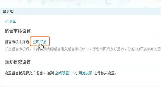 点击“立即开始”,即可开启审核功能;开启留言评论审核功能后,日志、相册、留言板中来自非好友的新留言或评论在通过您的审核后才能显示。